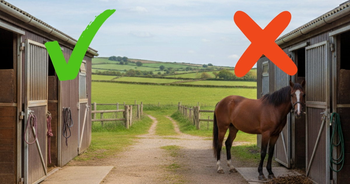 Start with the basics: is the property safe and thoughtfully designed for horses? Walk the fence lines and paddocks. Horse-safe fencing such as wood, vinyl, or properly installed mesh indicates that safety is taken seriously. Loose boards, makeshift repairs, or hazardous materials suggest corners may be cut elsewhere as well.